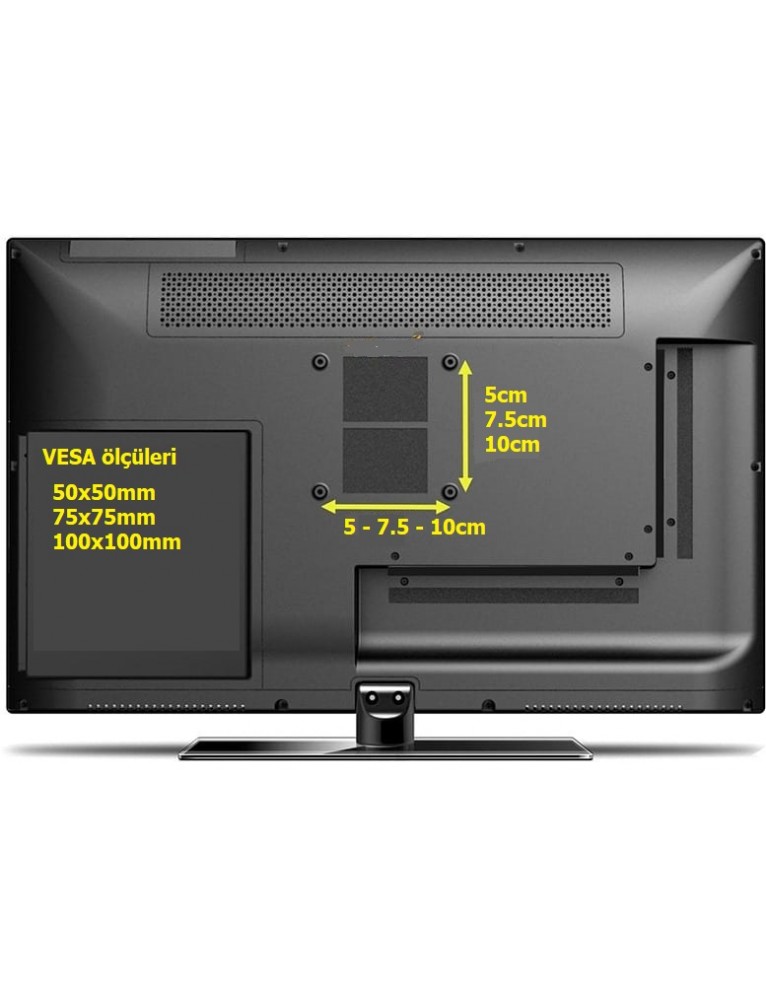 Ürünün sizin cihazına uyup uymadığını anlamak için ; cihazınızın arkasında bulunan 4 adet mmontaj deliğinin ara mesafe ölçülerini kontrol etmeniz yeterli. 2 delik arasındaki ölçünüz